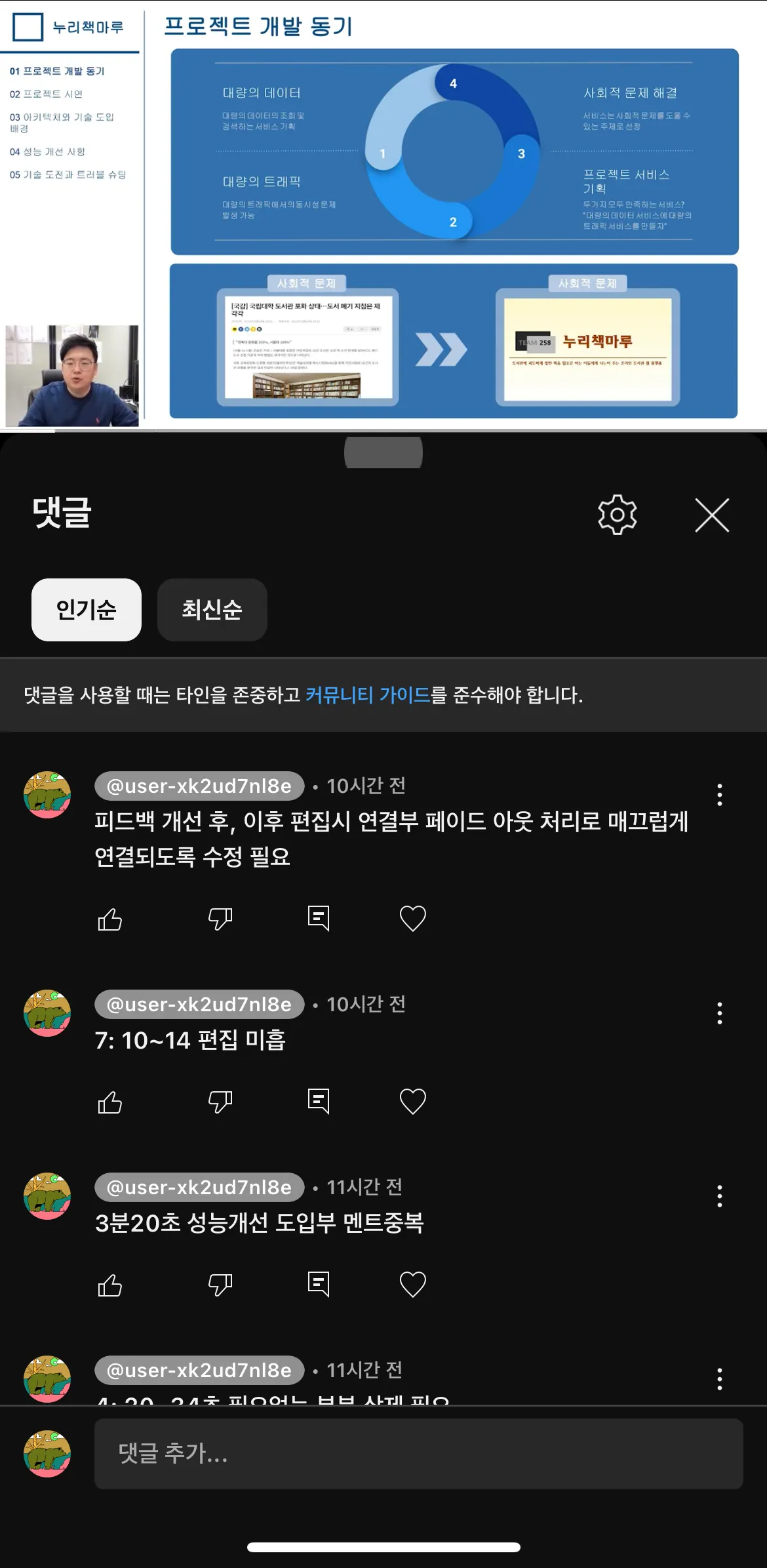 모니터링을 통해 문제점들을 기록하고 추가 편집