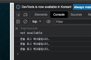 하지만 생각보다 알림창이 거슬리기 때문에 console.log를 통해서 테스트, 디버깅 하는 것이 편리하다.