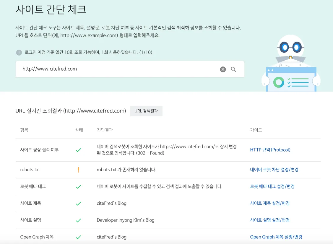 사이트 검색 최적화 간단 체크에서 robots.txt와 관련되서 문제가 발생하고 있었다.