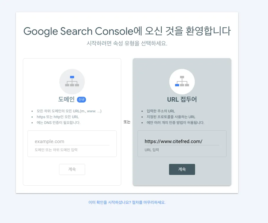 Google Search 콘솔에 접속하여 나의 블로그의 소유권을 인증하면 기본적으로 엔진에 등록된다.