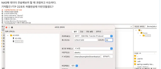 NAS에 데이터 전송해보려 할 때 과정하고 비슷하다.