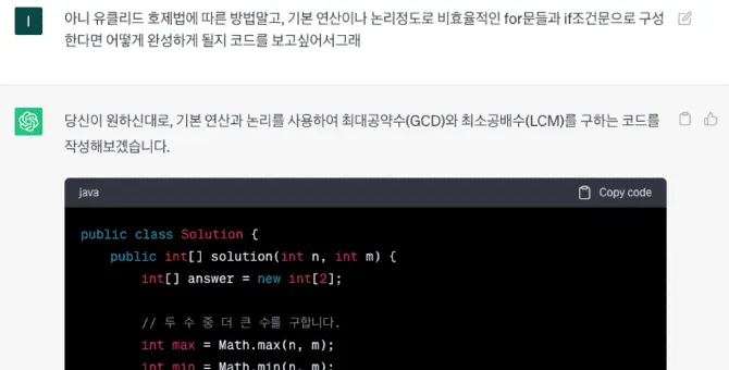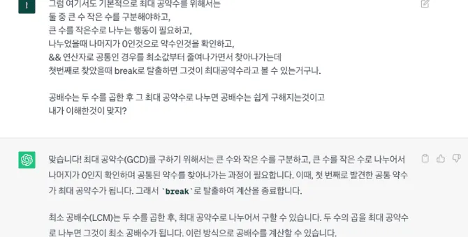 // --------------------------ChatGPT로부터 유클리드 호제법으로 접근한 나----------------------------