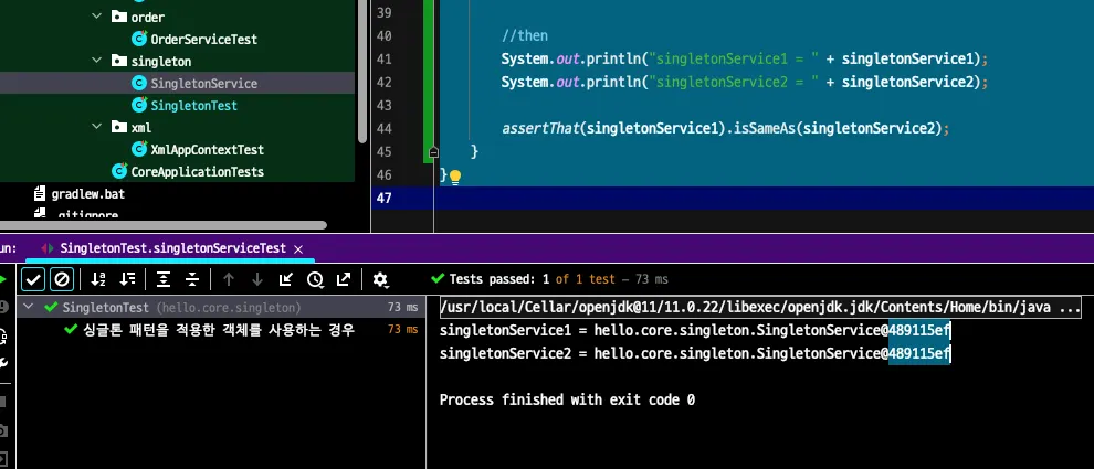 테스트 코드를 통해 주소값이 동일한지 확인 할 수 있다.