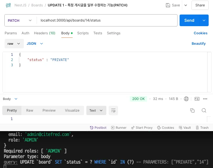 게시글의 부분 수정(공개 상태 status 수정) - ADMIN 전용 기능으로 변경