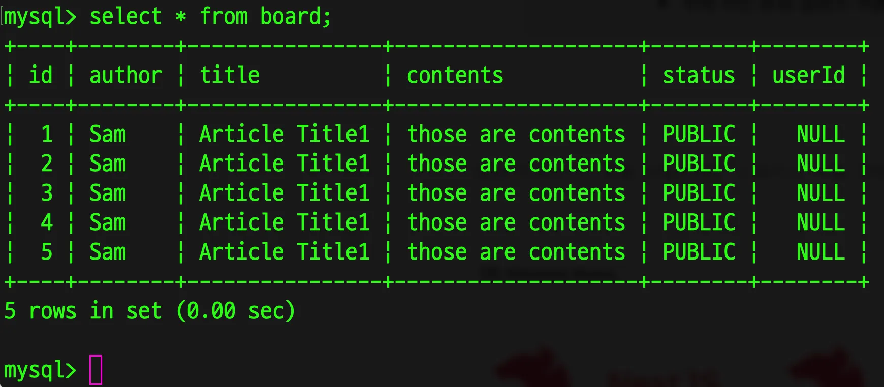 결과 Board : User 는 N : 1의 관계로 볼 수 있다. (Many To One == 다대일)